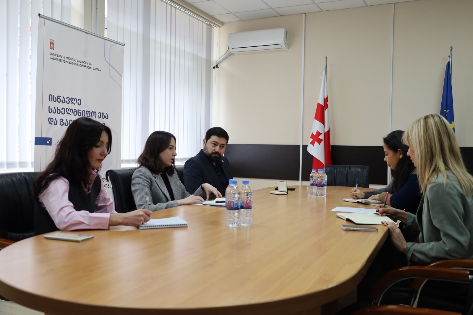 საქართველოს განათლების, მეცნიერებისა და ახალგაზრდობის მინისტრმა გივი მიქანაძემ, პირველ მოადგილე ლევან ღირსიაშვილთან ერთად, ზურაბ ჟვანიას სახელობის სახელმწიფო ადმინისტრირების სკოლის თანამშრომლებთან შეხვედრა გამართა. მინისტრს სკოლის დირექტორმა მარიამ კობიაშვილმა მიმდინარე პროექტებთან და მიღწეული შედეგებთან დაკავშირებით მიაწოდა ინფორმაცია. შეხვედრის ფარგლებში გივი მიქანაძემ, სახელმწიფო ენის სწავლების უზრუნველყოფის, ეთნიკური უმცირესობების ერთიან სახელმწიფოებრივ სივრცეში ინტეგრაციის ხელშეწყობისა და ქართული ენის პოპულარიზაციის მიზნით, სკოლის მიერ განხორციელებული პროგრამების მნიშვნელობაზე ისაუბრა და სამომავლო გეგმები განიხილა. მინისტრმა ზურაბ ჟვანიას სახელობის სახელმწიფო ადმინისტრირების სკოლის თანამშრომლებისგან არსებული გამოწვევების შესახებ მოისმინა დეტალური ინფორმაცია და მათი დაძლევის გზებზე იმსჯელა. შეხვედრა დისკუსიის რეჟიმში წარიმართა და მონაწილეებს შესაძლებლობა ჰქონდათ, მათთვის საინტერესო კითხვებზე მიეღოთ ამომწურავი პასუხები და ამასთანავე, დაეფიქსირებინათ თავიანთი მოსაზრებები. შეხვედრას ასევე ესწრებოდა განათლების, მეცნიერებისა და ახალგაზრდობის სამინისტროს შიდა აუდიტის დეპარტამენტის უფროსი გიორგი ურუშაძე.